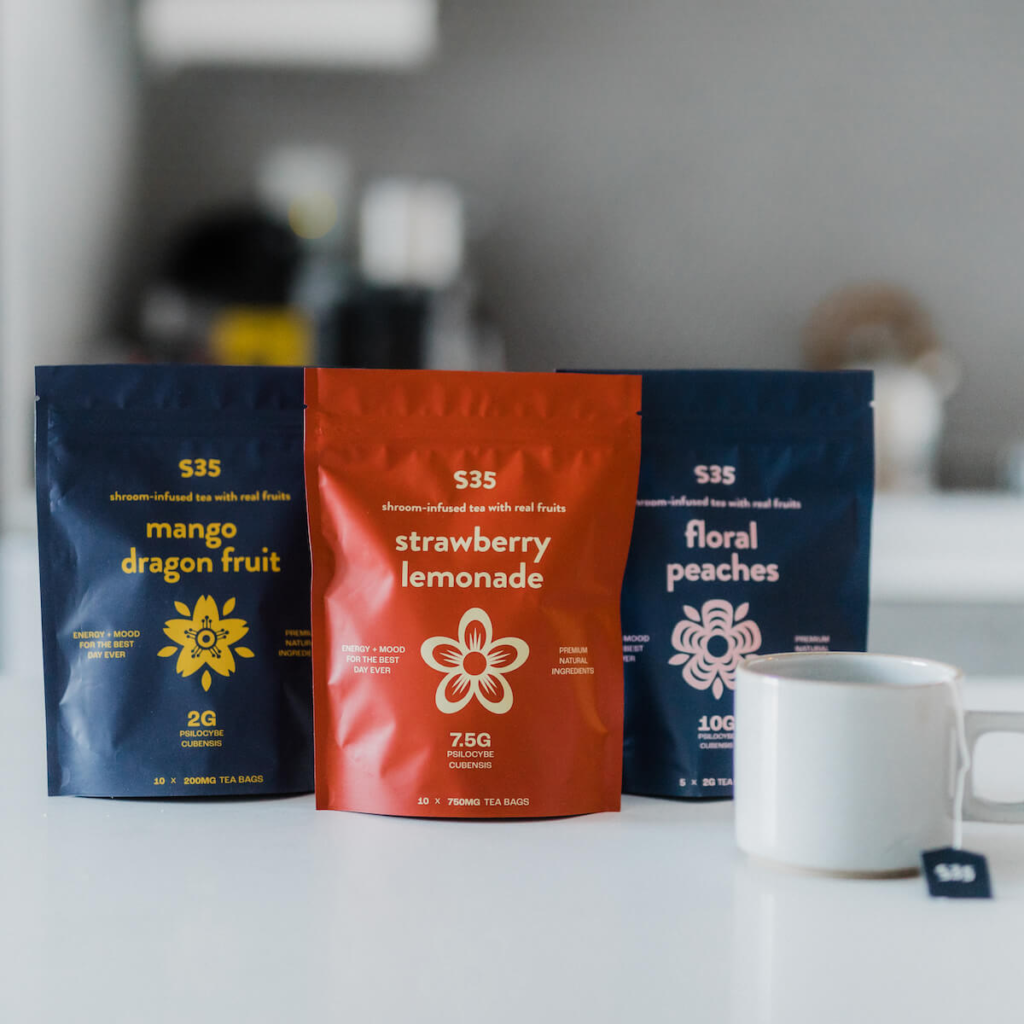 For a calming, flavorful ritual, Schedule35’s shroom teas blend real fruit, premium tea leaves, and organic mushrooms. Each serving is pre-measured for consistency, ensuring a reliable experience every time. These teas are vegan, organic, and perfect for those who want to sip their way to clarity.