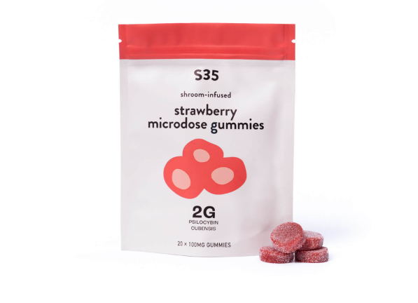 Alt: S35 Shroom-infused strawberry Microdose gummies pack